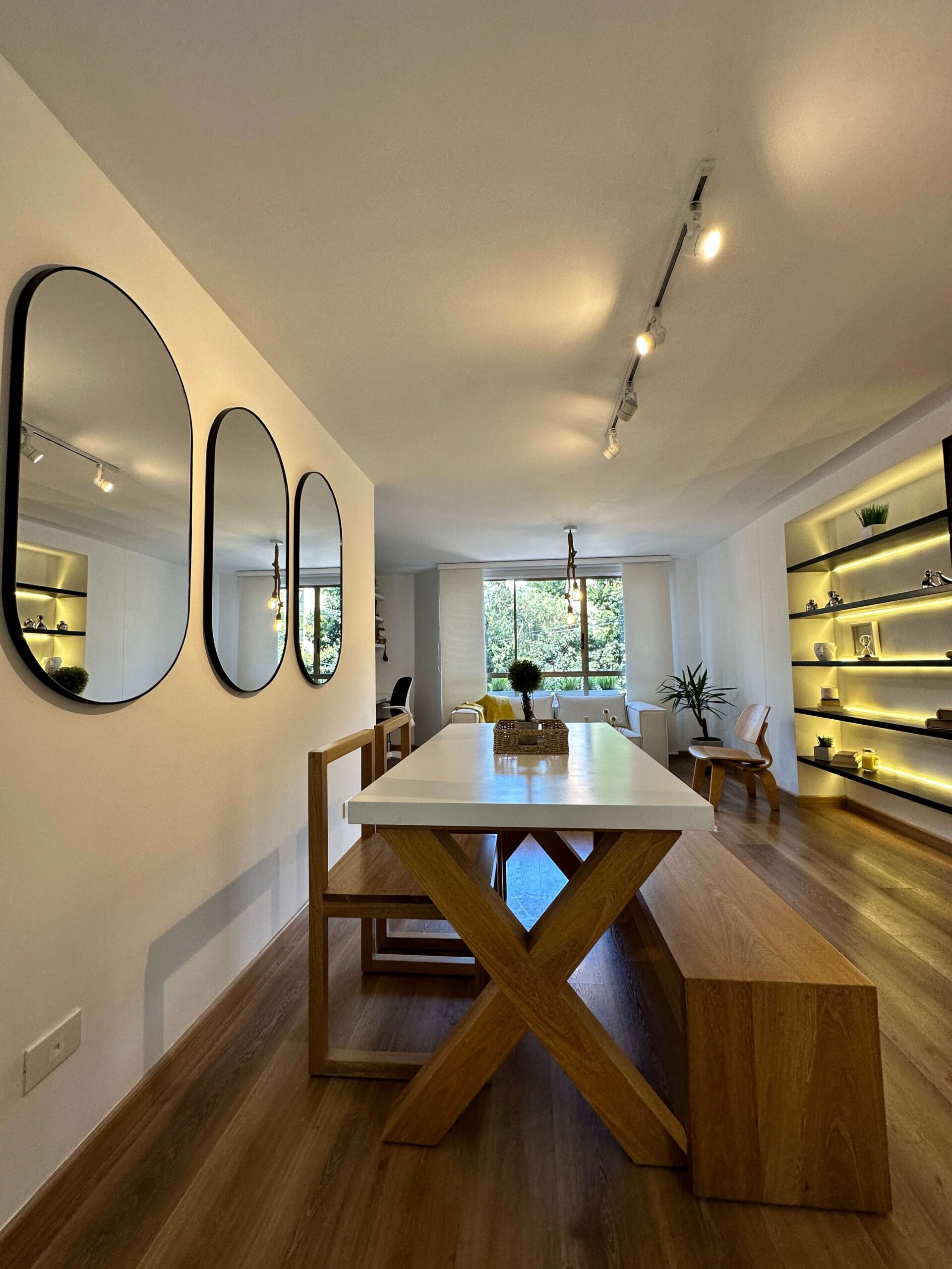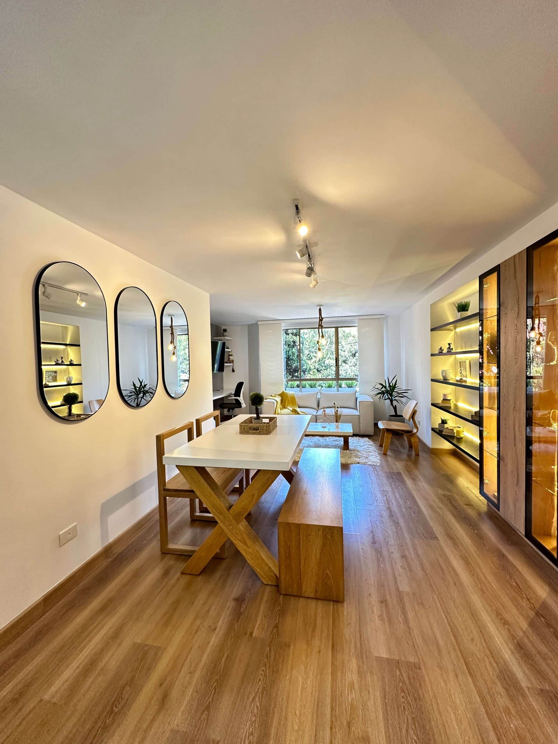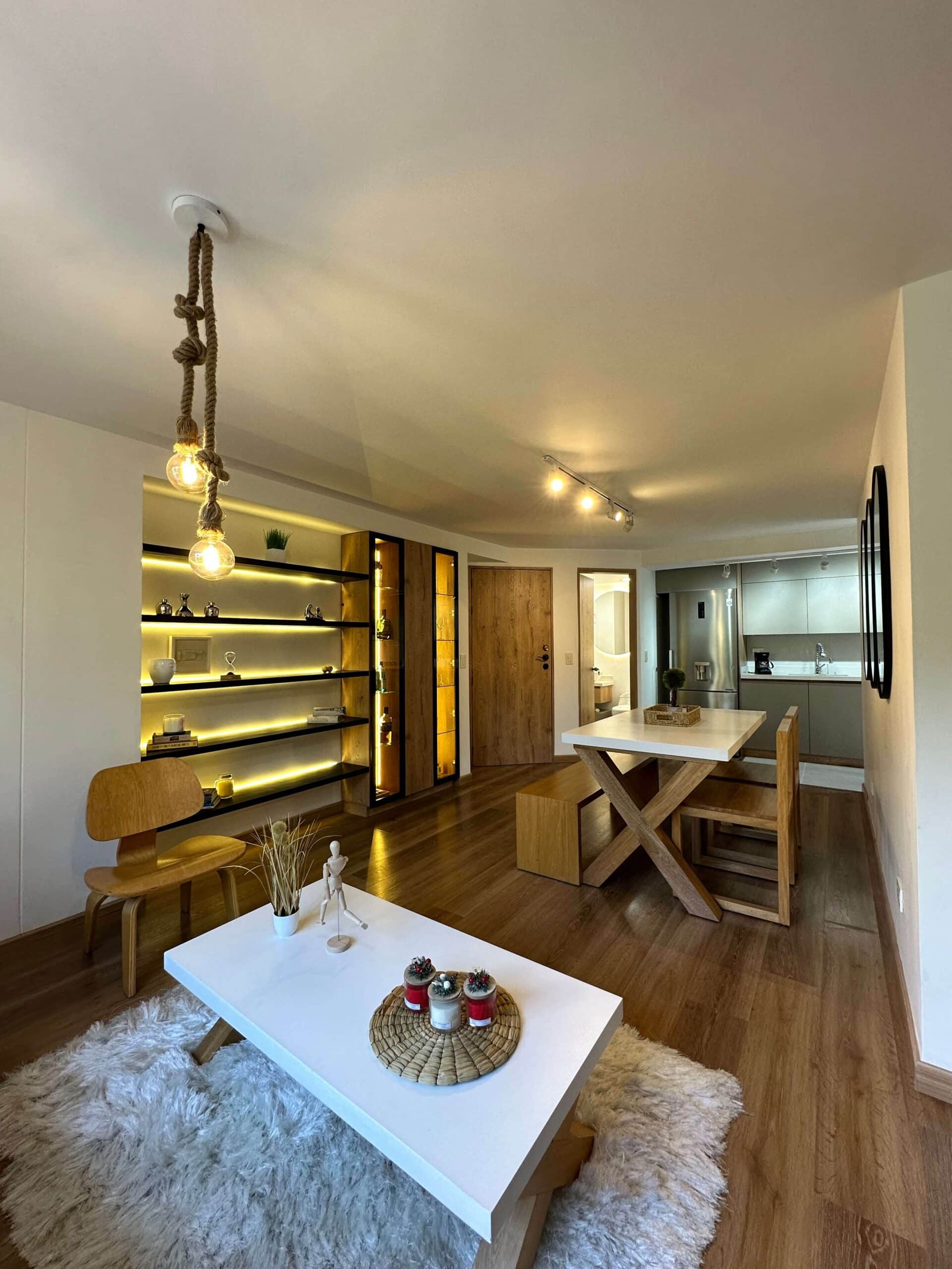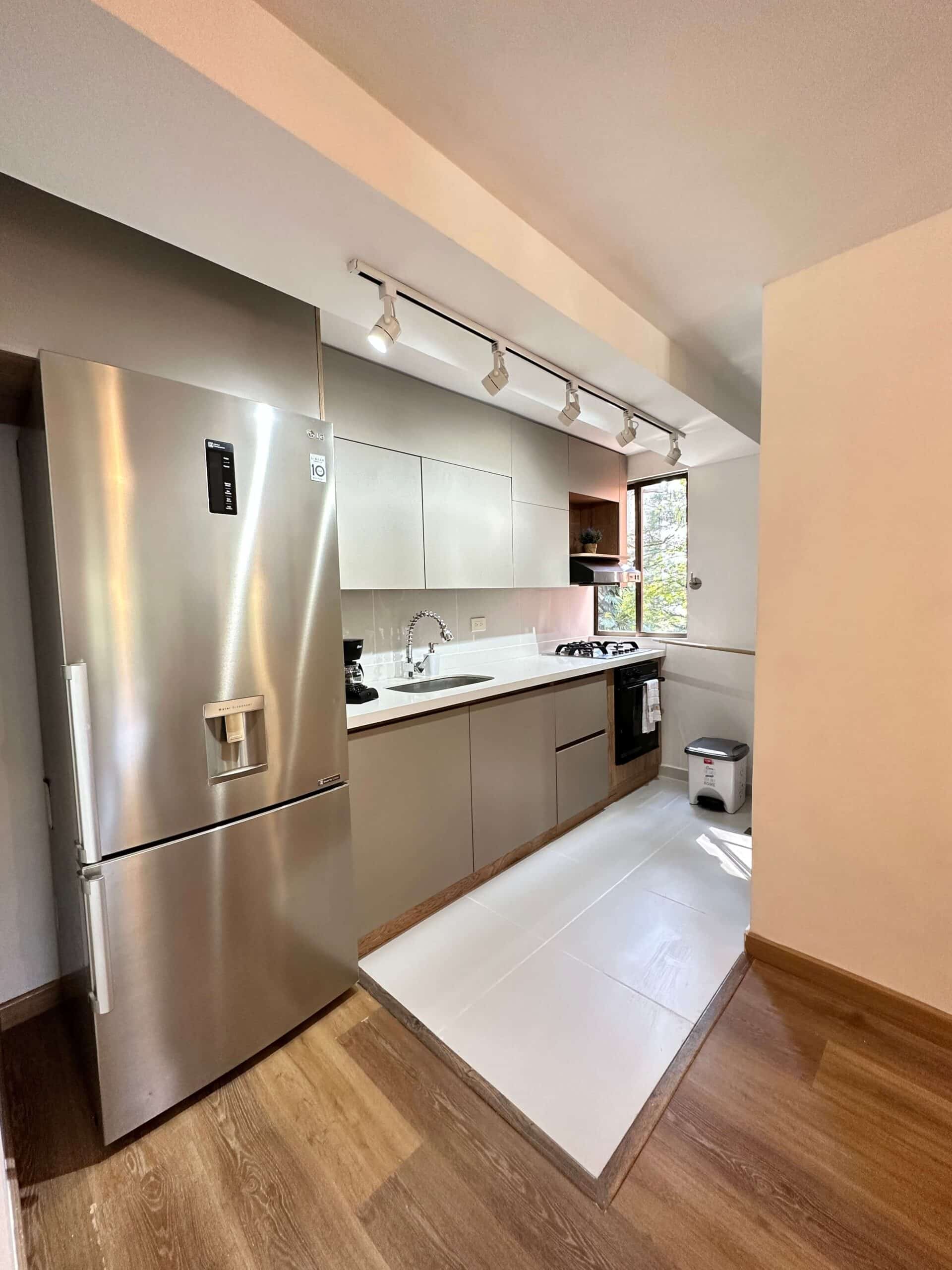 Habitación principal con comoda cama doble, ropa de cama de alta calidad, Smart TV (43”), baño privado y closet. Amplia sala de estar con un lindo sofá integrado al comedor. Acceso a una Smart TV (50”). Escritorio con silla de oficina. Bar con set de mixología. Espacio lleno de moderna decoración. Cocina completamente equipada con horno. Área de lavandería con lavadora y secadora.