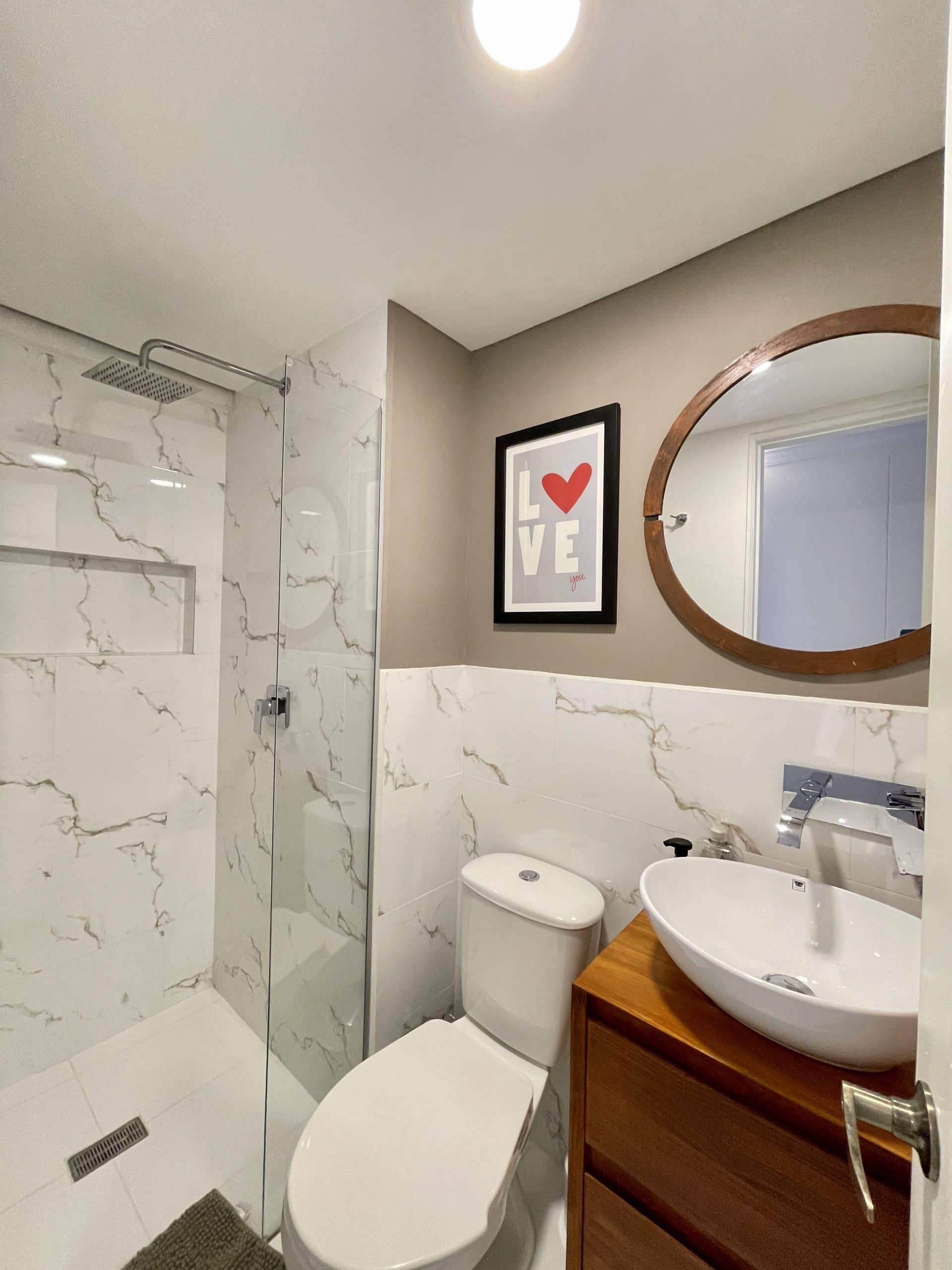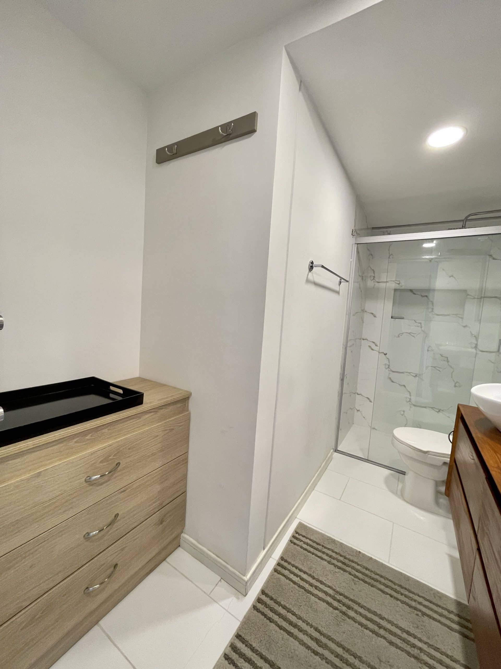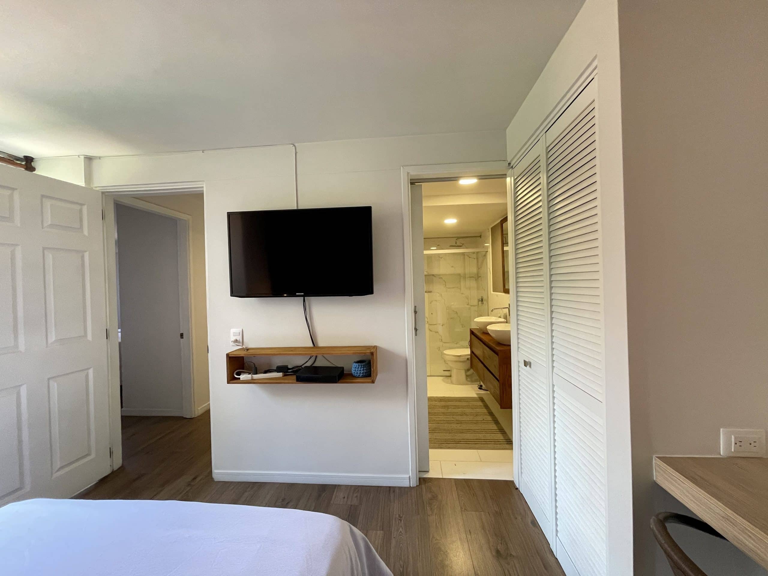 Descripción: 75 metros cuadrados. Diseño moderno y elegante. Dormitorio principal con baño en suite, doble clóset, cama matrimonial, TV. Segunda habitación con clóset, cama matrimonial, clóset y Smart TV (Google Chromecast)